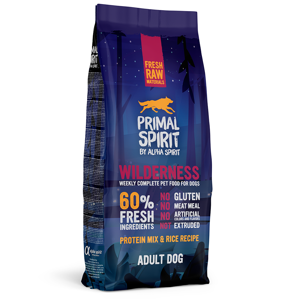 Our Primal Spirit Wilderness Complete Dog Food has been made from 60% fresh ingredients. It is gluten-free, meat meal free and contains no artificial colours or flavours making it a fantastic choice for your beloved dog.